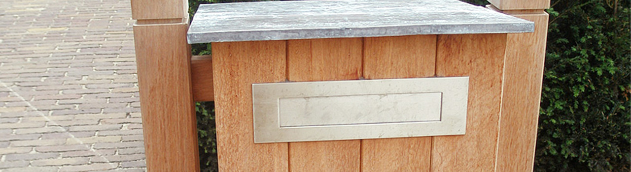 Onze breivenbussen worden op maat vervaardigd in onze werkplaats. Speciaal behandeld gaan ze jarenlang mee. Wilt u ook een andere breivenbus dan uw buren? Vraag dan naar de mogelijkheden van een houten brievenbus!